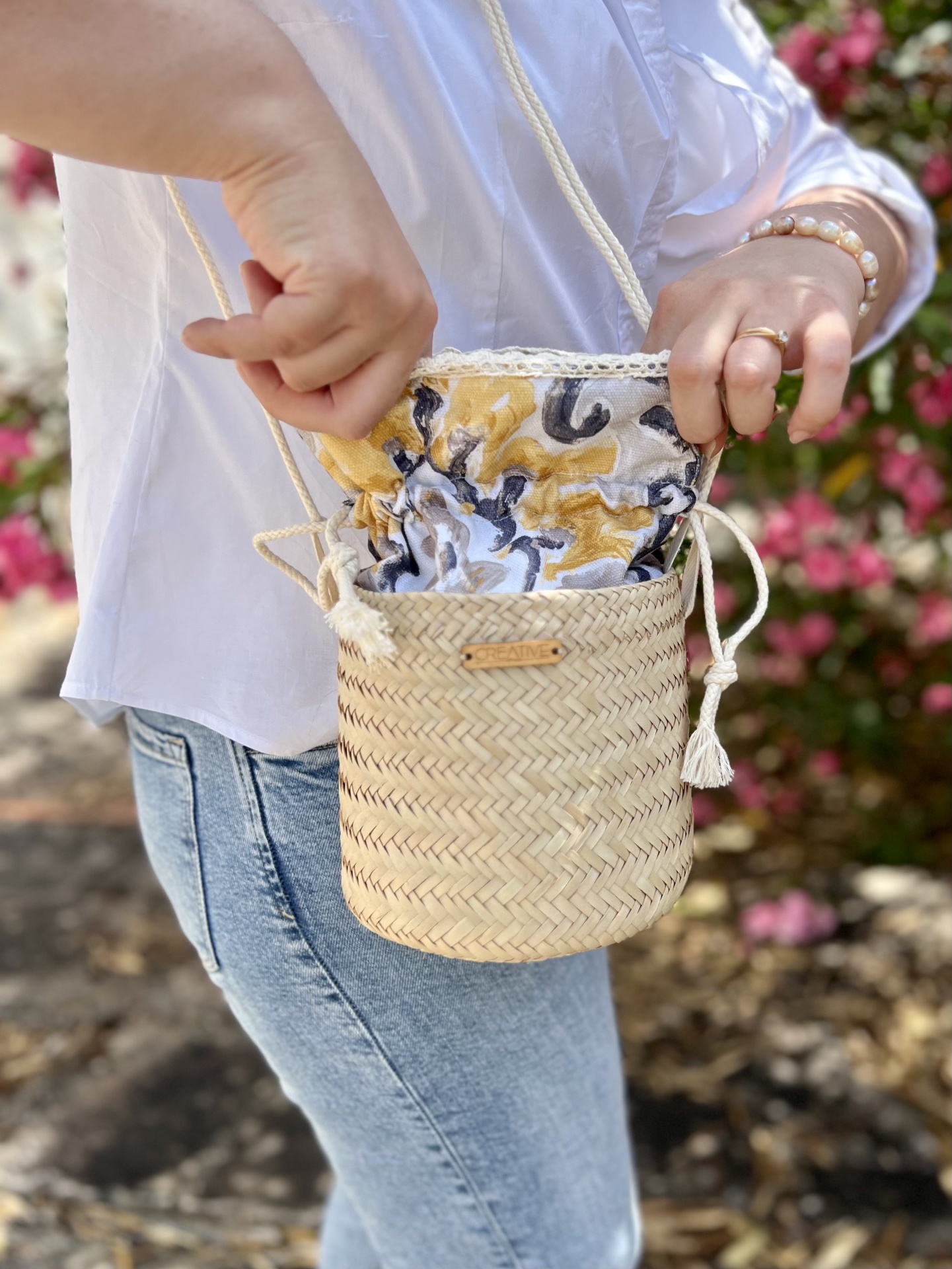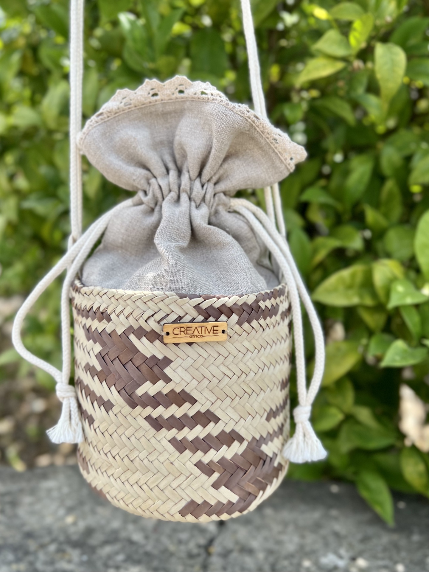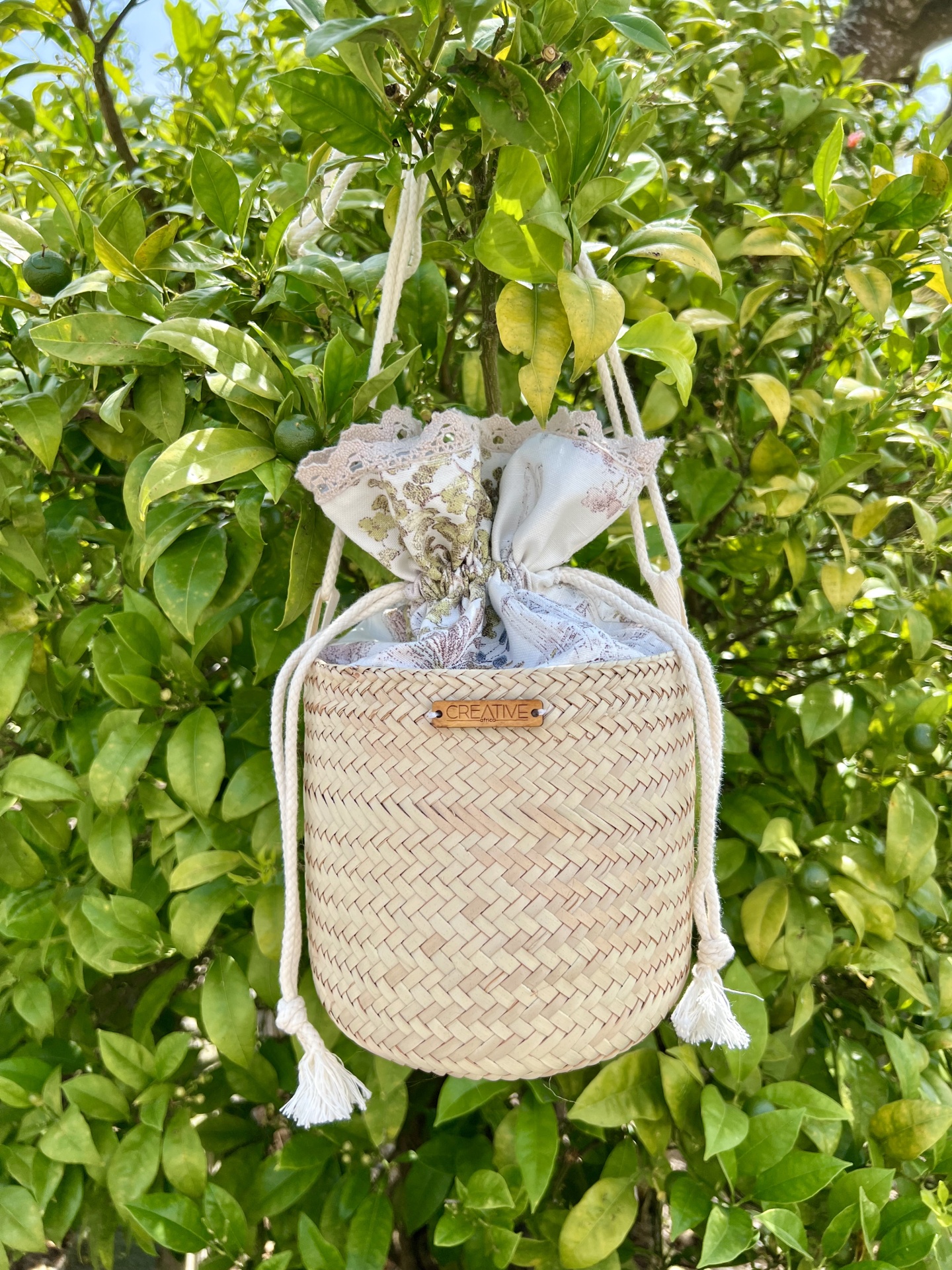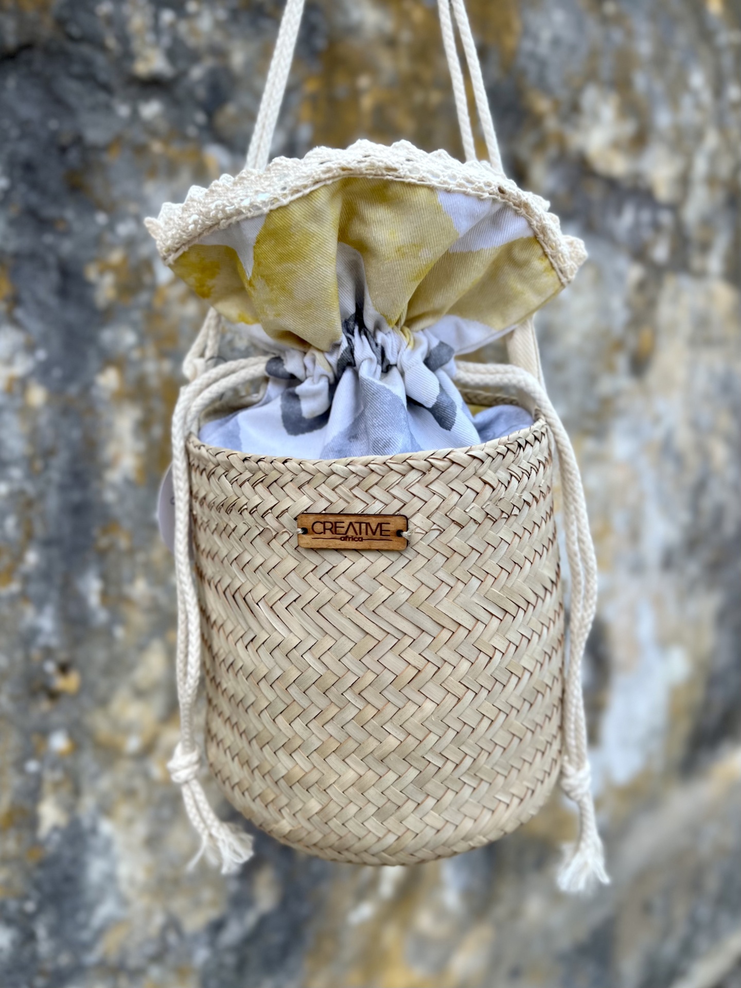 Estas cestas são resultado de uma parceria entre a Ajuda de Mãe e a Creative Africa, onde combinamos folha de palma e tecidos excedentes novos. Em Moçambique são feitas as cestas, pelas mãos de artesões locais e em Santarém são trabalhadas pelas mãos das mães que apoiamos.