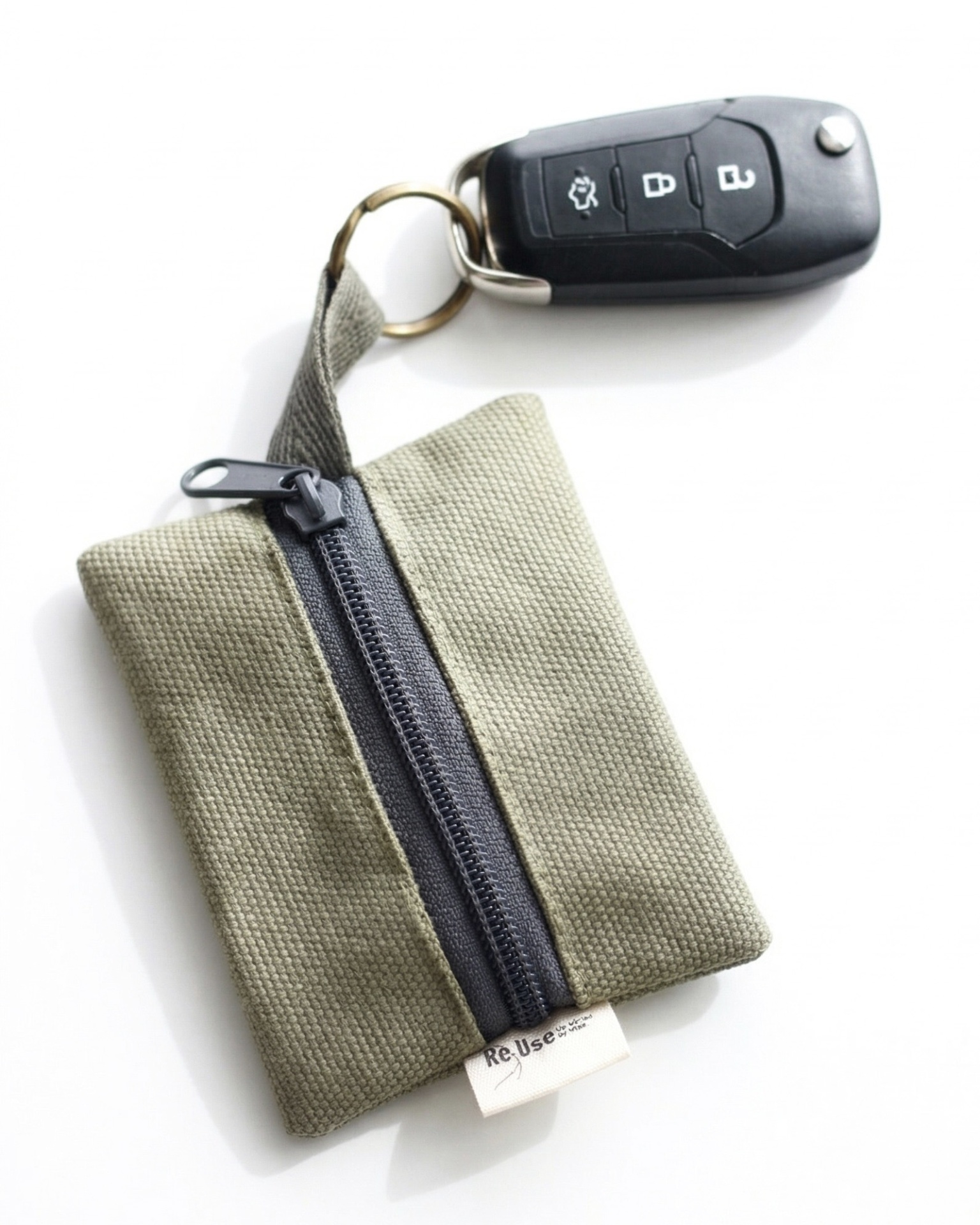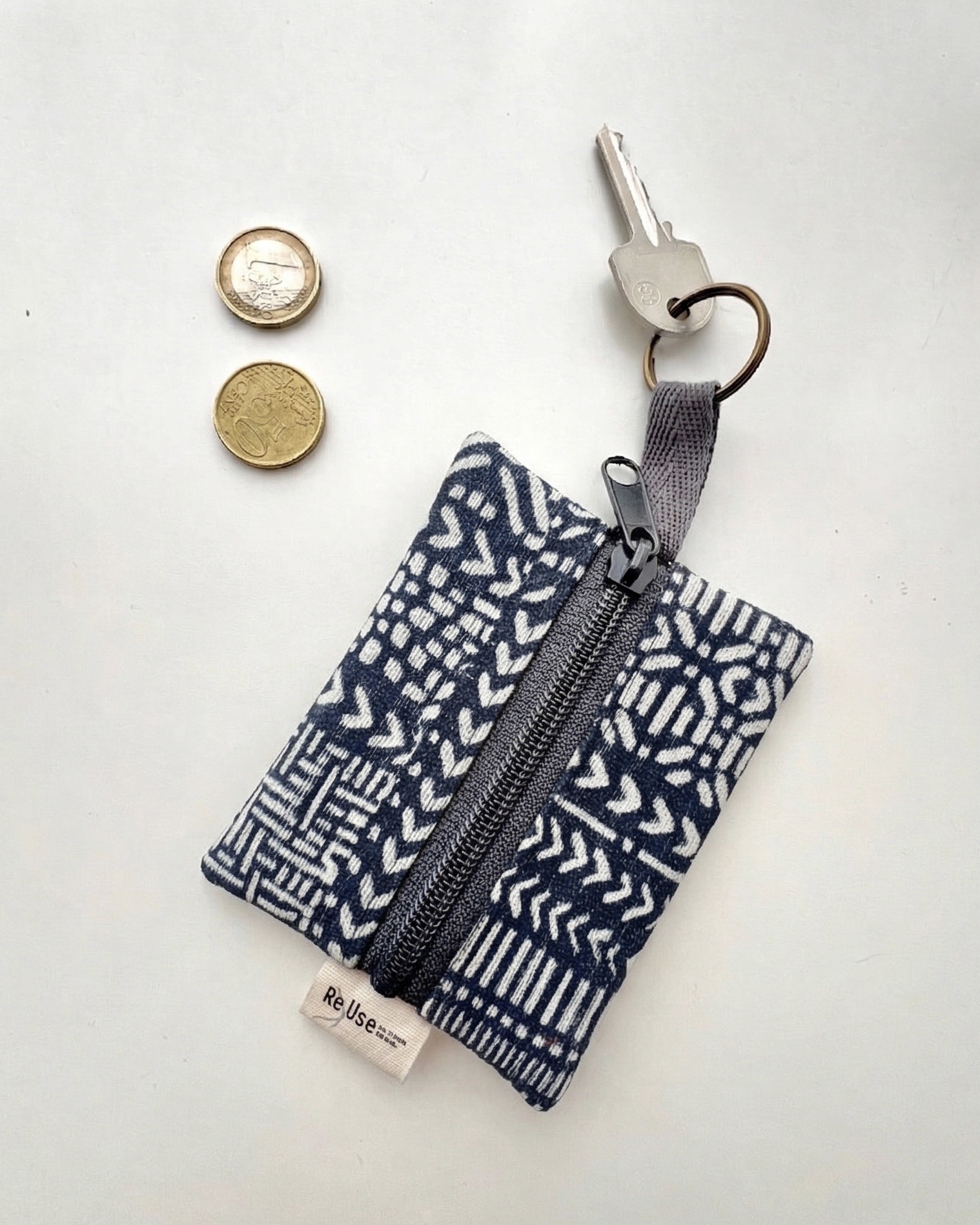 Com o nosso porta chaves 2 em 1, acabe com as moedas soltas pelos bolsos e tenha sempre as suas chaves à mão - criado a partir de desperdício têxtil.